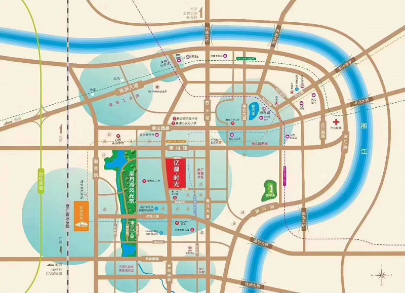 亿都·时光位响合路与栗雨南路交汇处,作为武广新城中部交通枢纽中心,规划建设快速公交线,汇集武广高铁、渝长厦高铁、城际铁路覆盖全国的出行系统,便捷可见;紧邻800亩博古山智慧运动公园与星月湖风光带,规划布局天然氧吧林、拓展探险地、全民健身场、中心广场秀、智慧亲子园等市民休闲区,静享闲适;踞武广CBD国际商务区,自建商业、天易科技城自主创业园等科技产业多点开花,通过神农、栗雨、天元三商圈辐射,多米新街市、天元超市等大型商业集聚,繁华俯身既是;位武广教育中轴,集市二中附小、市二中初中部、株洲市二中于此,形成二中十二年“一站式”教育体系,株洲市幼儿园、株洲市天元中学、湖南工业大学等名校环绕,未来可期。