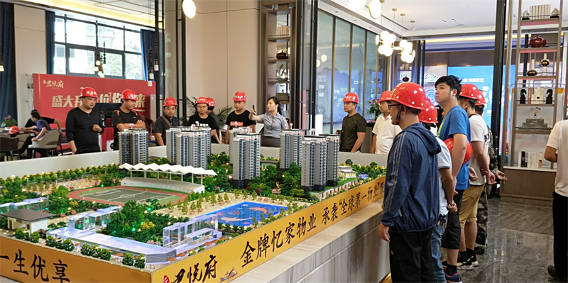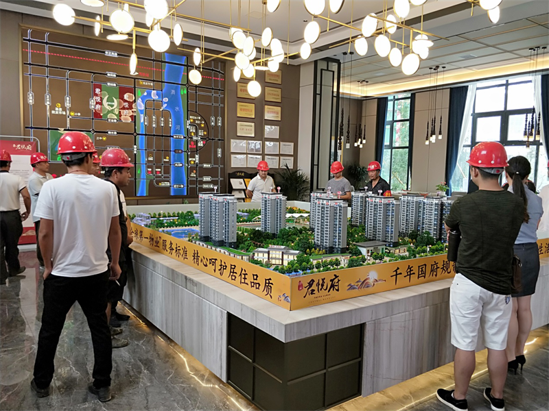 考察团先后来到项目营销中心、项目施工现场参观学习,亿都地产(控股)芷江分公司营销负责人及工程经理向考察团介绍了项目基本情况、施工流程等情况,考察组人员对项目的建设、商务运行、过程控制及相关工艺指标等方面展开了深入沟通交流。