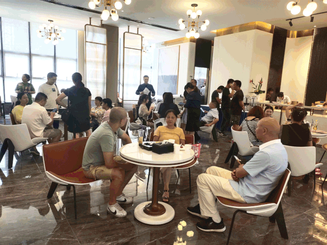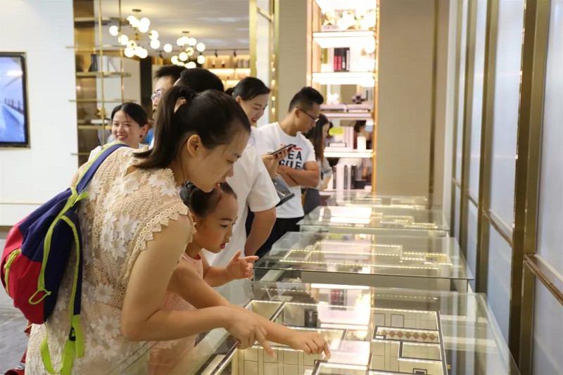营销中心人潮络绎不绝,这次开放即获得了超高关注,现场沙盘区、洽谈区、休憩区...挤满慕名前来的客户,负责接待的销售人员一刻未停,热情引导前来品鉴的客户。