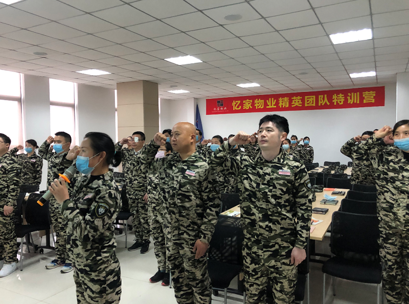 忆家物业精英团队特训营开学典礼上,所有管理人员庄严宣誓,永远把业主的需求放在第一位!全心全意提供优质服务。
