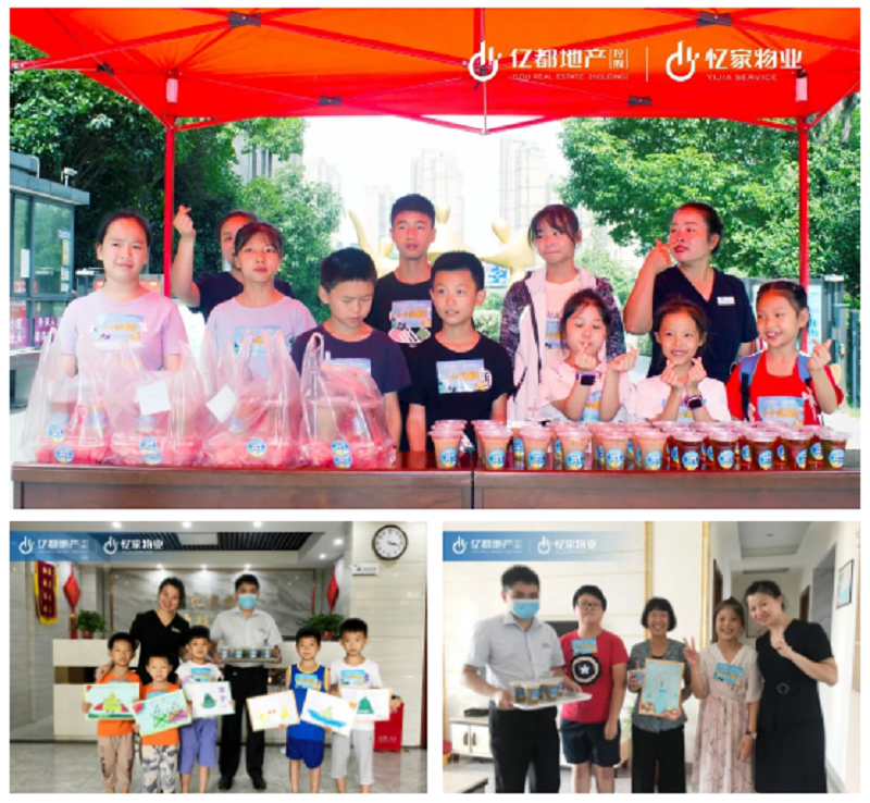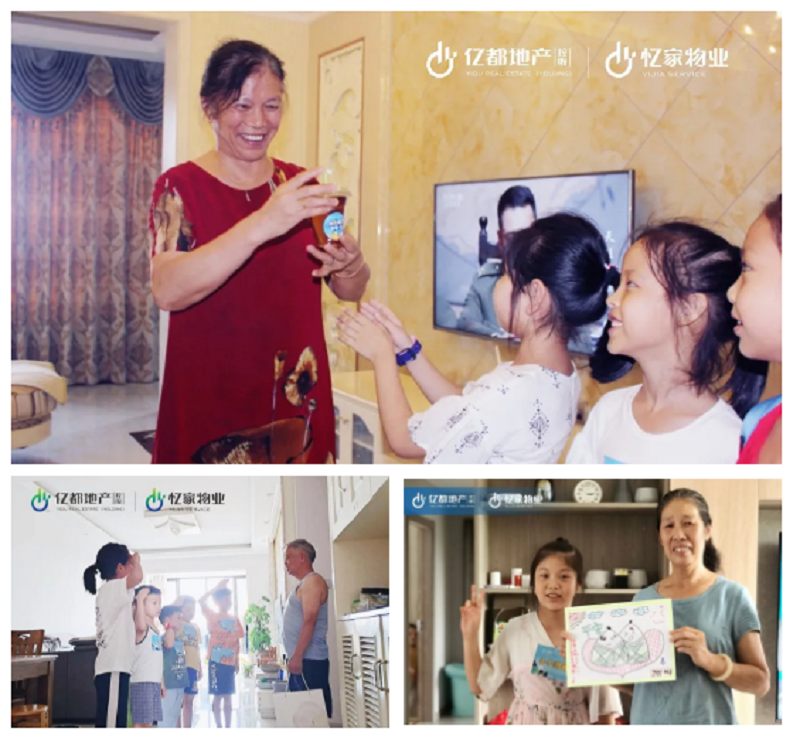 为弘扬孝贤文化,传承中华美德。忆家物业在各大小区内招募了一批“小小消暑员”,并带领他们在童话镇内为独居老人绘画送祝福、上门拜访送降暑物资,让一个个“小爱”汇聚成温暖忆家。