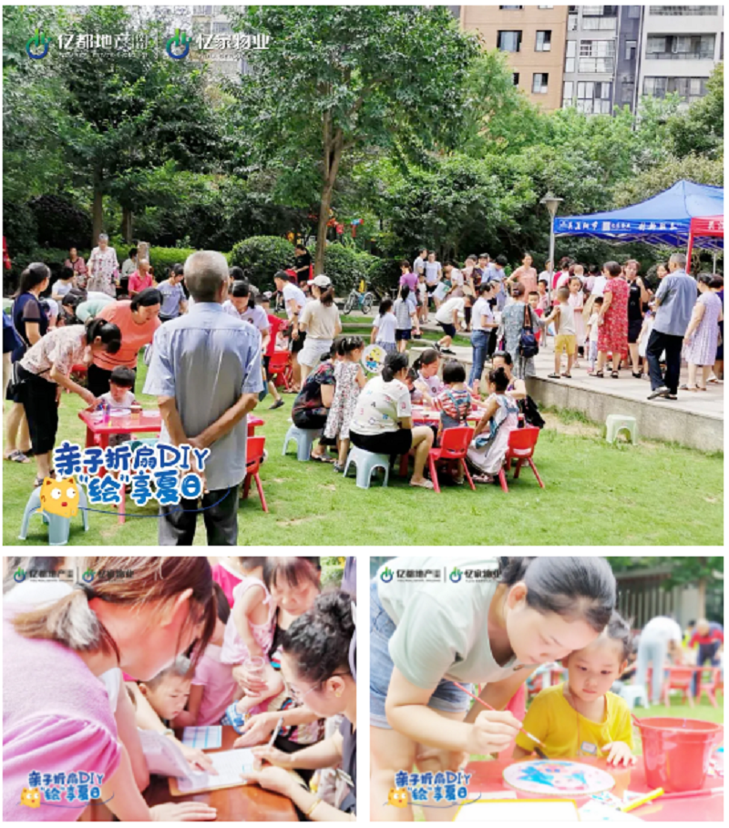 这个夏天,忆家物业通过举办折扇diy活动,让孩子们的创造力和活力齐齐迸发:他们在父母的指引下大开脑洞,水果、动物、大树....在孩子们的笔下形成了一幅幅清爽的扇子画,整个活动现场弥漫着孩子们欢快的笑声。