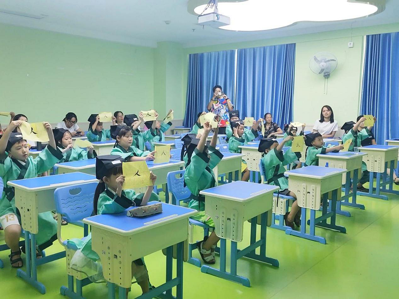 学做人,首先要写学会写人。在国学老师的指引下,家长们带着孩子一撇一捺的写下了人字,一笔为品德,一笔为才能。有仪式感的“开笔破蒙”环节,是想让孩子们明白,在人生成长的过程,父母永远都是你的启蒙老师,要学会做人,更要学会感恩父母的教导。