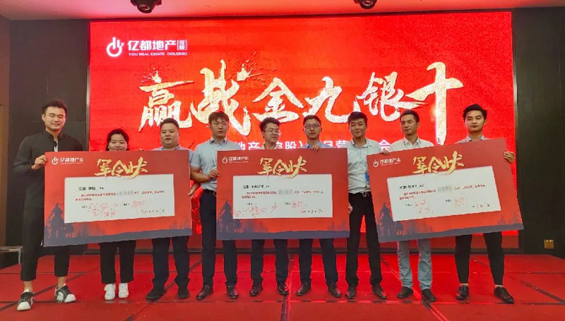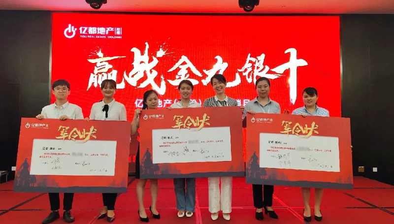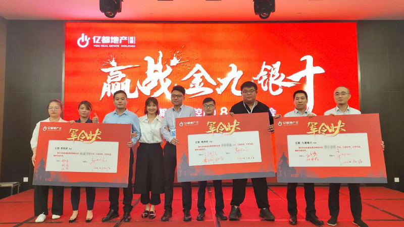 以价值创造者为本,表彰卓越成绩,见证荣耀时刻。营销月会对亿都地产(控股)优秀团队及优秀个人进行表彰。荣誉只代表过去,未来还需努力前行,颁奖结束后各项目负责人上台签下销售军令状,承诺带领销售团队勇往直前,创造佳绩。