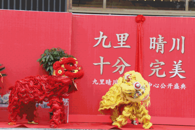 活动现场,金狮狂舞,亿都房产领导为舞狮点睛,预祝项目大卖,红红火火;随后,现场领导与嘉宾一起触摸水晶球,大门缓缓拉开,新中式营销中心惊艳亮相!