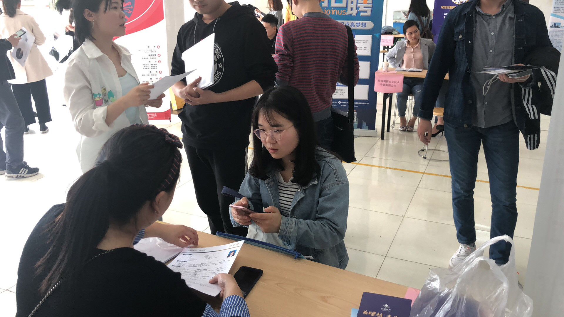 此次双选会在长沙理工大学学生创新创业园一楼大厅盛大举行,下午13:00开始,大厅内人头攒动,现场气氛热烈,吸引了湖南各大名校数百名学生前来应聘。