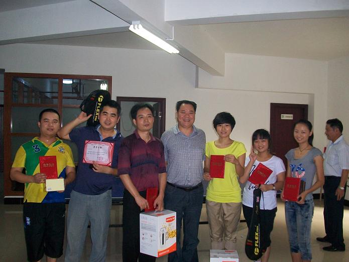 2011年8月27日亿都房产第一届乒乓球赛完美落幕,公司领导与获奖者留影。